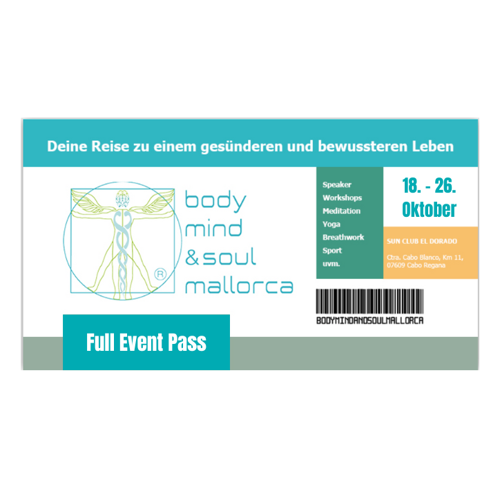 Verpasse nicht diese einmalige Gelegenheit, Dein Wohlbefinden zu fördern und unvergessliche Tage in einer inspirierenden Umgebung zu verbringen. Sichere Dir jetzt Deinen Event-Pass und sei dabei!